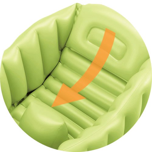 縁はつぶれに強い縦空気層になっていて、ちょっと腕が疲れた時に腕をのせてもつぶれず、ママにも優しい構造になっています。