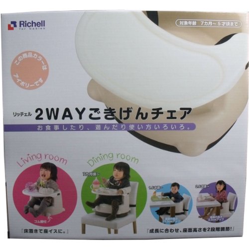 商品紹介 お食事したり、遊んだり使い方いろいろ! 成長に合わせ、座面高さを2段階調節! ●床置きで座イスに! ●イスに取付けたり、台座調節で高さをアップ!