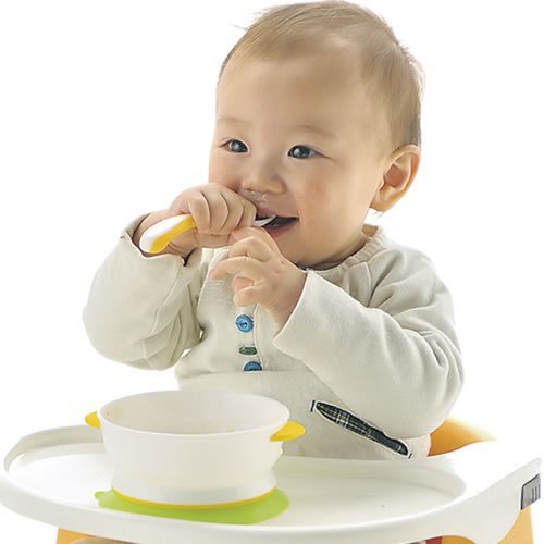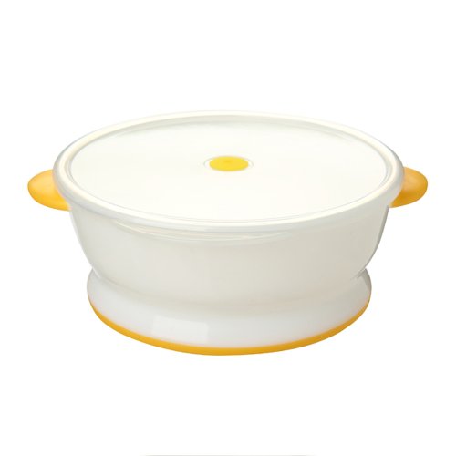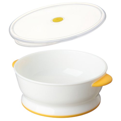 「UF離乳食ボール(レンジフタ付)」は、すべりにくくやわらかい素材、エラストマーを採用した、お子様に初めて持たせるのに最適な食器です。