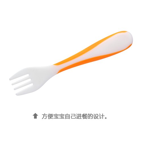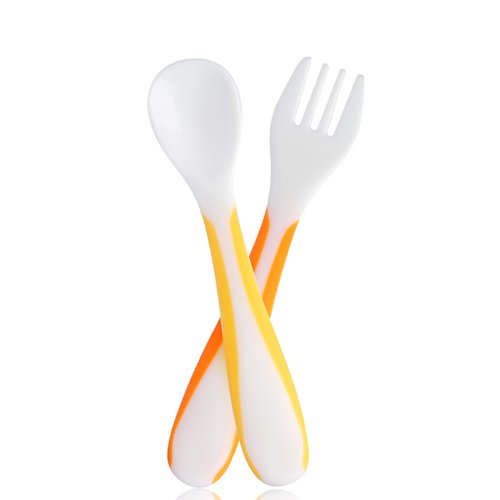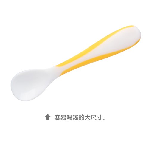 「UFベビースプーン・ベビーフォーク」は、すべりにくくやわらかい素材、エラストマーを採用した、お子様に初めて持たせるのに最適な食器です。