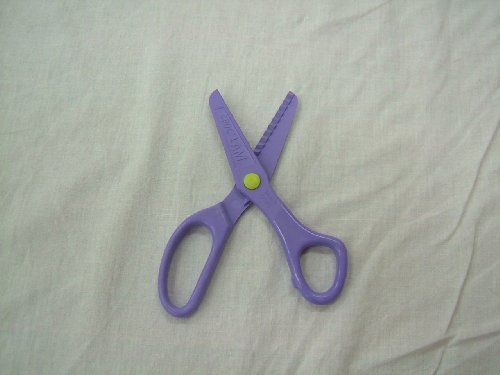パープルのはさみは刃がギザギザなので、紙を切ったら切り口がギザギザギザになります。