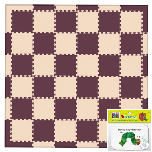リトルプリンセス Little Princess 抗菌フロアーマット ツートンカラー ベージュ&ブラウン (正方形マット36枚、エッジマット16枚、コーナーマット8枚)、Bitattoはらぺこあおむし付き