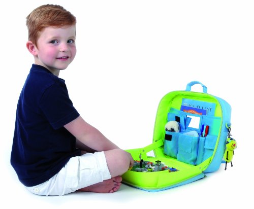 TrayKit? is the all in one kid's carry-on backpack and play tray solution - a kid's backpack which can strap to train and plane tray tables and hang from the seat in front in a car or sit on a lap to provide an extendable play surface with raised sides - no more toys on the floor! With TrayKit your child packs it full of their favourite toys and carries it themselves. Once in the car or on board a plane or train, it is hung from the seat or strapped to the tray table or placed on the lap and there is no bag to stow! With TrayKit you play within the bag, on the extendable play surface and when you are done, you simply shut TrayKit and off you go! There are lots of pockets to hold your travel treasures, a mirror and a fully wipe clean surface - with its side supports it will even stay open if the person in front reclines their seat. Take It: Carry it as a backpack or case - perfect!, Pack It: Fill it with your favourite on the go entertainment - pens, paper, electronic toys, games, snacks - on the go fun - packed!, Strap It: Attach the TrayKit to a tray table or hang it from the seat in front in a car - no more toys rolling on the floor! TrayKit gives a child independence and their own travel companion.