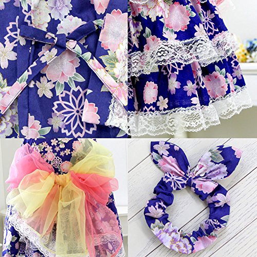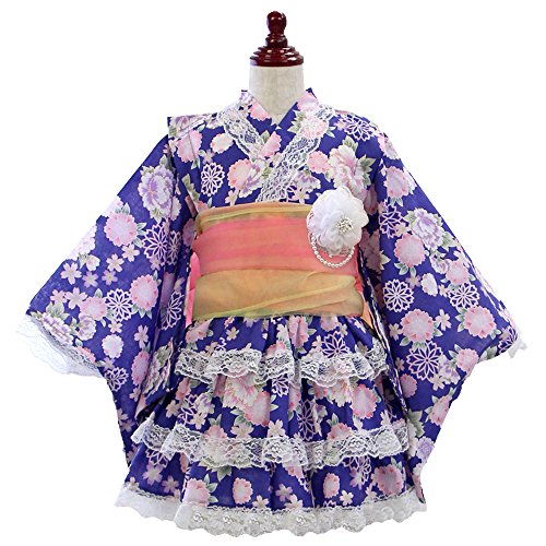 922778D 花輪(ネイビー) 浴衣ドレス 子供 ベビー 浴衣 女の子 選べる17柄 5点セット ゆかた 夏祭り 花火大会 キッズ [リトルプリンセス] Little Princess コサージュ有 95cm