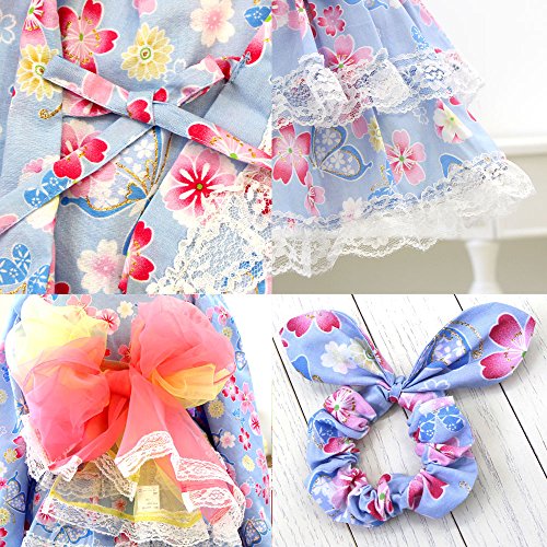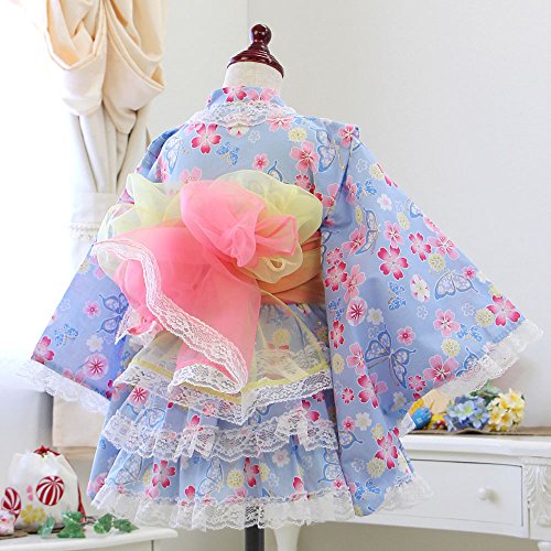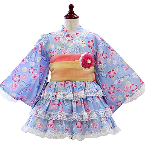 922772D 蝶×花畑 浴衣ドレス 子供 ベビー 浴衣 女の子 選べる17柄 5点セット ゆかた 夏祭り 花火大会 キッズ [リトルプリンセス] Little Princess コサージュ有 95cm