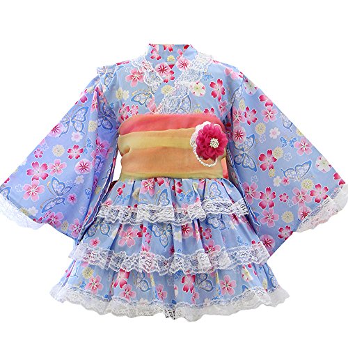 922772D 蝶×花畑 浴衣ドレス 子供 選べる17柄 浴衣ドレス+兵児帯 ベビー キッズ ジュニア 女の子 [リトルプリンセス] Little Princess コサージュ有 90cm