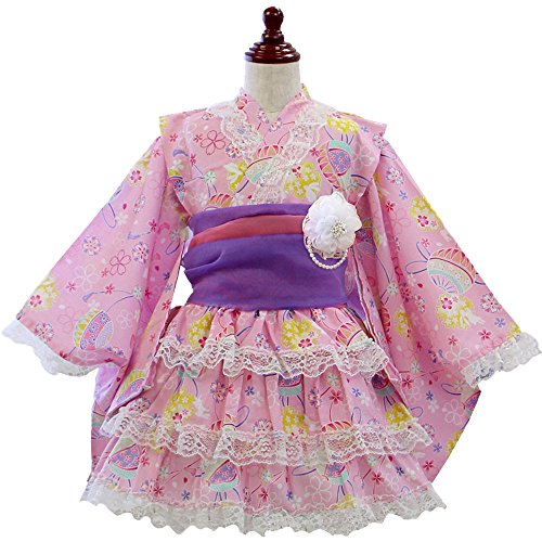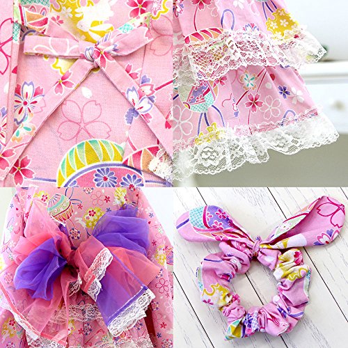 922774D さくら兎(ピンク) 浴衣ドレス 子供 ベビー 浴衣 女の子 選べる17柄 5点セット ゆかた 夏祭り 花火大会 キッズ [リトルプリンセス] Little Princess コサージュ有 90cm