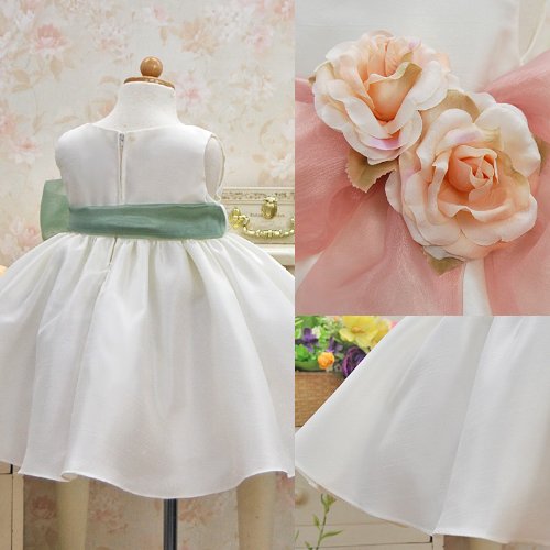ウエストのリボンは可愛いローズピンクと上品なセージの2色☆