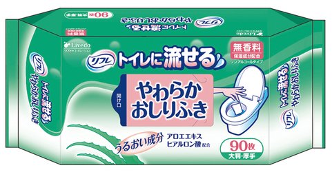 リフレ トイレに流せるやわらかおしりふき90枚 アロエエキスとヒアルロン酸配合!12入