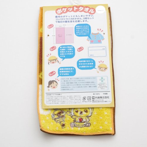 リラックマ ポケットタオル2枚組 園児のポケットにもしまいやすい、コンパクトサイズのタオル 名前が書けるネームつき 綿100% 中国製 サイズ:約10×20cm(ミニタオルの半分サイズ)
