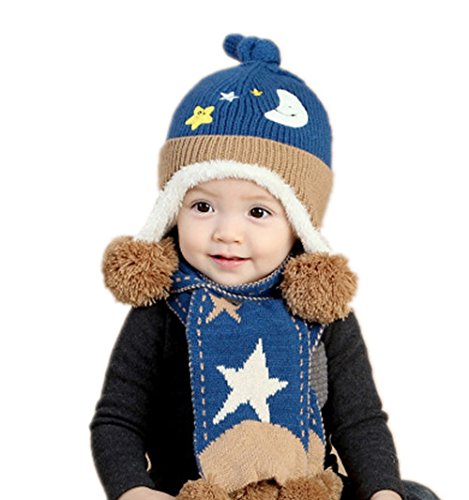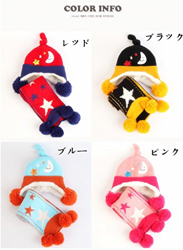 選べる4色 ニット帽子&マフラー セット耳まであったかキャップ ベビー キッズ 子供用 ニットキャップ 赤ちゃんニット帽 誕生日 出産祝い (ブルー)