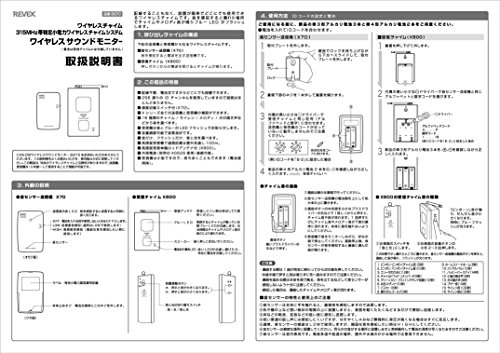 - 音センサー送信機-電源:DC3V 単4形アルカリ電池×2本(別途)、電池寿命:約2ヵ月(20度で1日10回動作して)、送信周波数:315MHz、IDコード数:256通り、選曲:ケース内部の選曲ボタンにより16種類の音を選曲可能、使用エリア:屋内専用、電源スイッチ:あり、音圧感知感度:LOW/HIGH切替スイッチ付、使用温度範囲:0~+40度、使用湿度範囲:90%