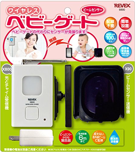 - [本体サイズ] 光とチャイム受信機:W6.3×D3.3×H9.6cm、赤外線ビームセンサー送信機:W7.7×D5.7×H8.7cm