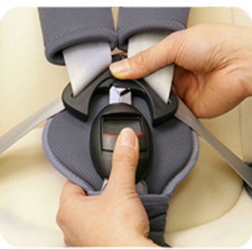 ヨーロッパ基準適合の耐衝撃バックル。ワンタッチで解除できるので、緊急時にもお子さまを速やかに救出できます。