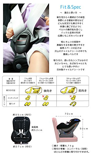 ☆ヘッドプロテクション構造ー衝撃吸収材を背もたれ部に配置し、衝突時の衝撃から頭部を守ります。 ☆シート側面の壁を高くすることで、側突の衝撃からもしっかりガードします。☆衝突時の頭部移動量を抑えられるよう、お子様の座る位置を低く下げてあります。☆ラクラク軽量設計です。☆バックルボタンはお子様は解除しにくく、パパ・ママには解除しやすい強度に設定されています。☆大型インナーパッドで首の座っていない赤ちゃんをやさしくサポートします。☆クイック3ステップ取り付けで後ろ向きも前向きも、簡単な手順で取り付けられます。☆後ろ向け取り付け時に背もたれが安全な角度になっているか、角度チェッカーで一目でチェックできます。☆自動車のシートを傷つけにくい平らな底面形状です。☆ヨーロッパ基準(ECE R44/04)適合です。