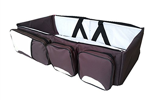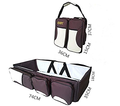 多機能おむつベビーベッド 3 in 1 ベビーバッグ 折り畳み 旅行収納ベビーベッド (ブラウン+ベージュ)