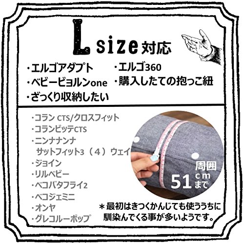 - Lサイズはエルゴアダプト エルゴ360 ベビービョルンone 大きめの抱っこひもに使えます。ざっくり収納したい方や買ったばかりの抱っこひもに。