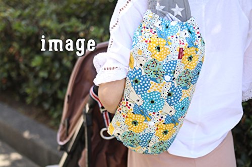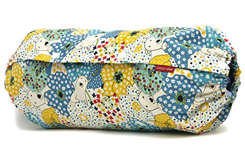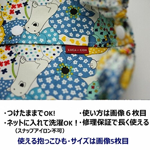 ルカコ 抱っこ紐(抱っこひも)収納カバー フリーLサイズ 大きめブルー×イエロー×ホワイトの花柄にシロクマ 生地しっかりめ 裏生地ブルーグリーン 「ルカコ」 88-0664-11