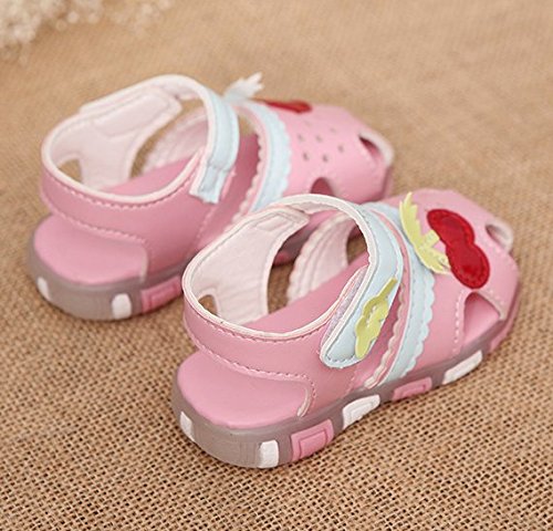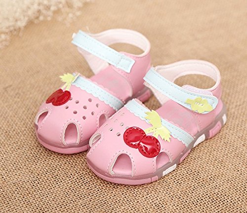 ルル屋 ベビーサンダル 女の子 子供靴 キッズシューズ ビーチサンダル 赤ちゃん靴 サクランボ付き つま先保護 夏 水泳 海 女児 (25(15cm), ピンク)