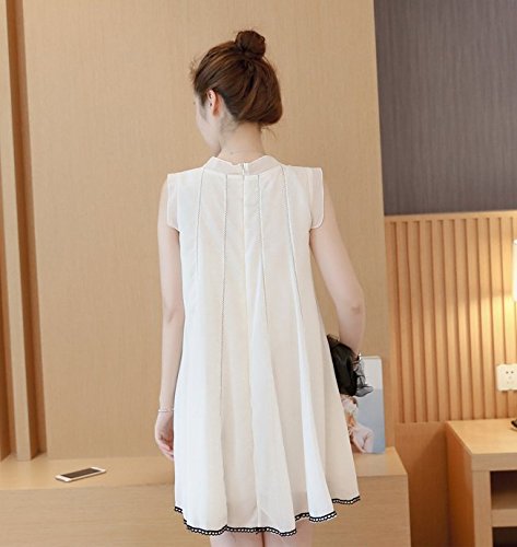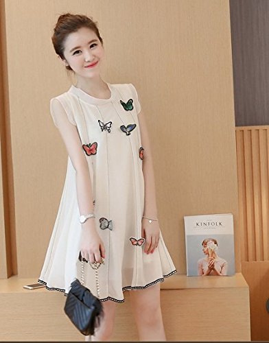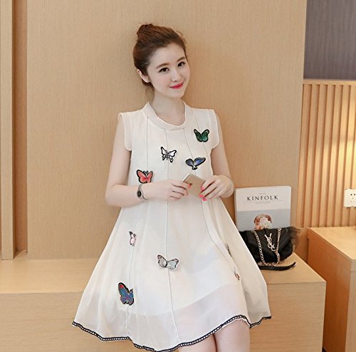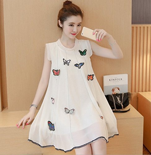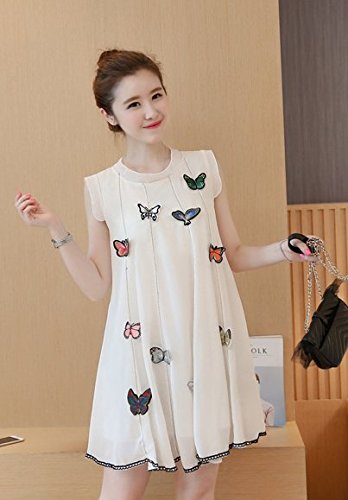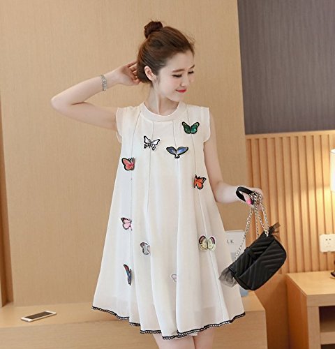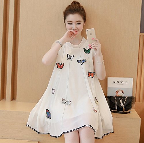 ルル屋 マタニティ 春 夏 フェミニン 蝶柄 シフォンワンピース チュニック M L XL ホワイト 白 フラワー ☆ 大きいサイズ ☆ 《オリジナルハンカチセット♪》 マタニティウェア ワンピース (M, 白)