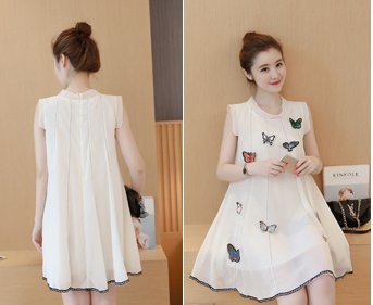 ルル屋 マタニティ 春 夏 フェミニン 蝶柄 シフォンワンピース チュニック M L XL ホワイト 白 フラワー ☆ 大きいサイズ ☆ 《オリジナルハンカチセット♪》 マタニティウェア ワンピース