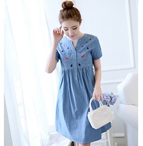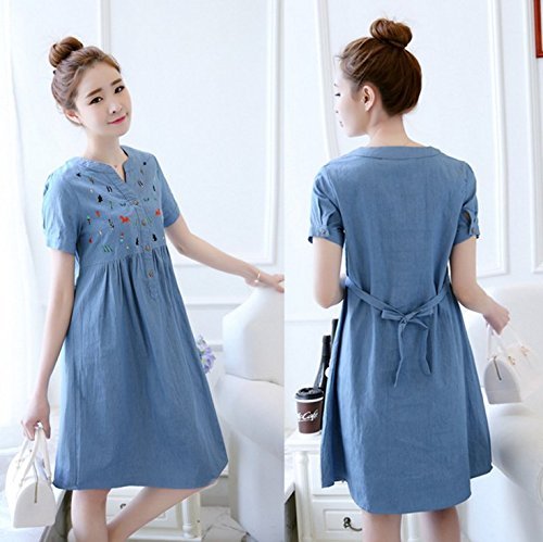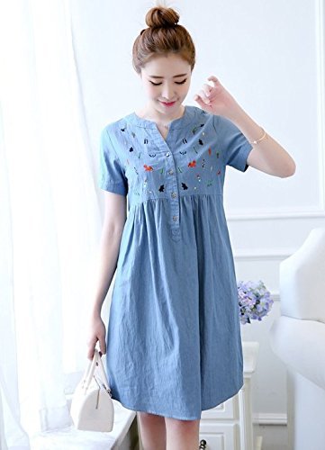 ルル屋 春 夏 マタニティ デニム シャツ ワンピース レディース カジュアル 普段着 チュニック 《お腹回り ゆったり 大きい サイズ》 授乳服 ママ 可愛い (M)