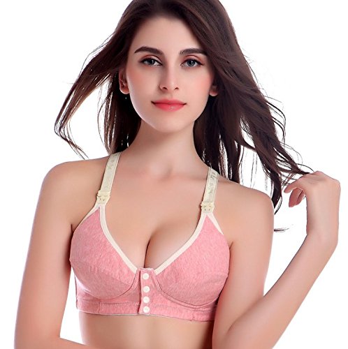 ルル屋 マタニティブラ 授乳ブラジャー ストラップオープンタイプ フロントスナップ前開き 肩紐太め 棉 スポーツ バッククロス 授乳カップホック開閉 (XXL90, ピンク )
