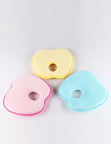ル・レイの家 可愛いベビーまくら 小熊型絶壁防止枕 枕専用カバーが付き 通気性がよい 高品質の素材 ベビーの肌に優しい赤ちゃん枕、0-12か月の赤ちゃんに適用 男女兼用 3色(ブルー、ピンク、イエロー)