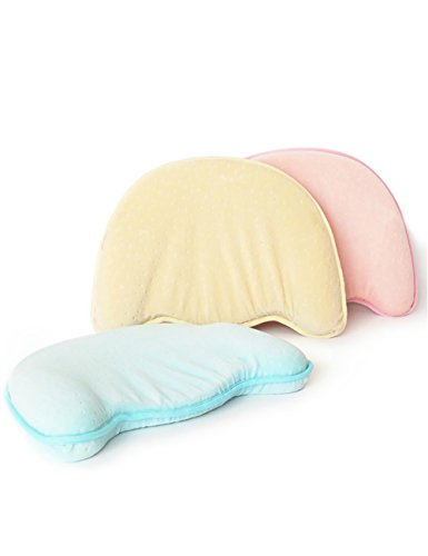 ル・レイの家 可愛いベビーまくら 絶壁防止枕 枕専用カバーが付き 通気性がよい 高品質の素材 ベビーの肌に優しい赤ちゃん枕、0-12か月の赤ちゃんに適用 男女兼用 3色(ブルー、ピンク、イエロー)