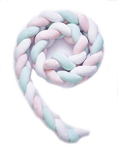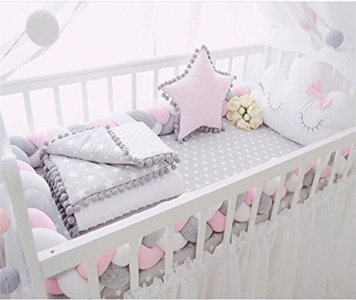 NEW! レイシークラシック(Lacey Classic) ベビーベッドガード サイドガード ノットクッション抱き枕 赤ちゃんベッドバンパー ソファークッション 結び目 ロング 部屋飾り 撮影小物 モノトーン 北欧 癒しアイテム 出産祝い プレゼント 約2m (ピンク+グーリン+ホワイト)