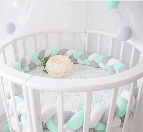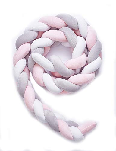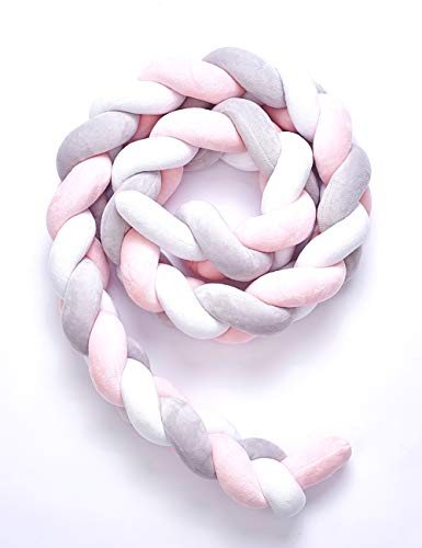 NEW! レイシークラシック(Lacey Classic) ベビーベッドガード サイドガード ノットクッション抱き枕 赤ちゃんベッドバンパー ソファークッション 結び目 ロング 部屋飾り 撮影小物 モノトーン 北欧 癒しアイテム 出産祝い プレゼント 約2m (ピンク+ホワイト+グレー)