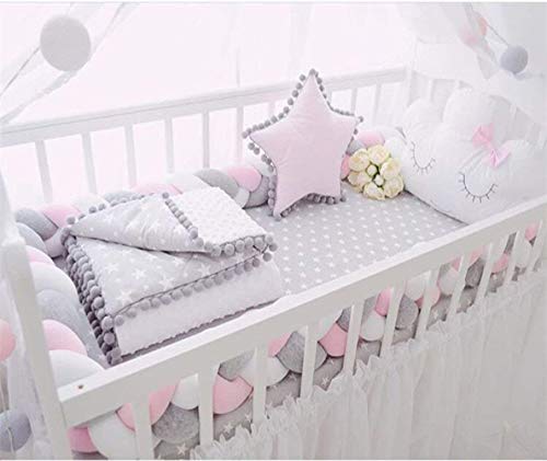 NEW! レイシークラシック(Lacey Classic) ベビーベッドガード サイドガード ノットクッション抱き枕 赤ちゃんベッドバンパー ソファークッション 結び目 ロング 部屋飾り 撮影小物 モノトーン 北欧 癒しアイテム 出産祝い プレゼント 約2m (ピンク+ホワイト+グレー)