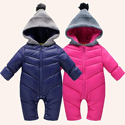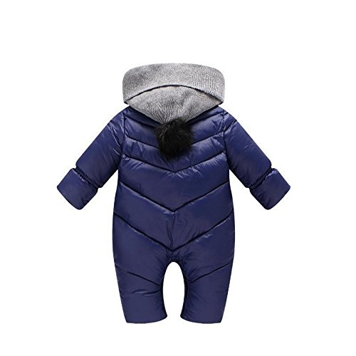 新作!ベビーダウンコート レイシークラシック(Lacey Classic) パジャマ ベビー服 赤ちゃん着ぐるみ フード付き カバーオール スキーウェア ジャンプスーツ ジャンパー あったか アウター オーバーオール 冬のお出かけ 寒さ対策 出産祝い ギフト プレゼント (73CM, ダークブルー)