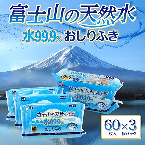 富士山の天然水 水99.9% おしりふき 60枚入×3個 (富士裾野工場 限定生産)