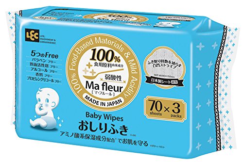 レック Ma fleur おしりふき 100%食用成分 (70枚入×3個) 純日本製 弱酸性 パラベンフリー