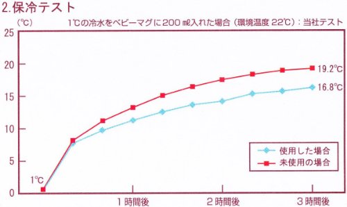 1度の冷水をベビーマグに200ml入れた場合の保冷テスト結果 ※メーカー実施テストより