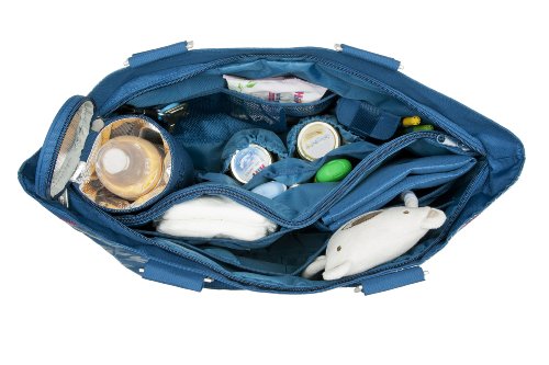 Detachable key fob, stroller hooks with clips, removable section for baby food containers (easy clean up);Removable insulated bottle holder, changing pad, tons of pockets inside and out;Removable zipper pouch for credit cards and cash, cell phone pockets;Pen holders and zippered wet pocket to separate clean from dirty;Easily wipes clean