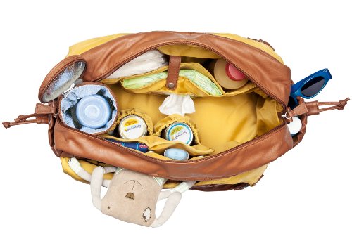 Bag measures 19.75 X 8.25 X 11;Material is water repellent, 100% PU;Includes stroller hooks