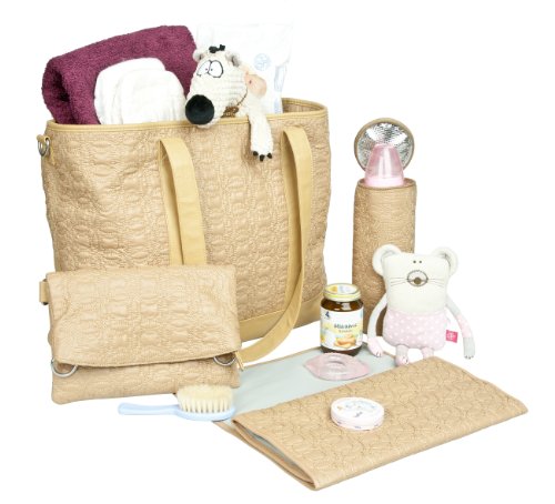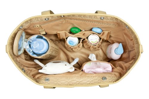 Detachable key fob, stroller hooks with clips, removable section for baby food containers (easy clean up);Removable insulated bottle holder, changing pad, tons of pockets inside and out;Removable zipper pouch for credit cards and cash, cell phone pockets;Pen holders and zippered wet pocket to separate clean from dirty;Easily wipes clean