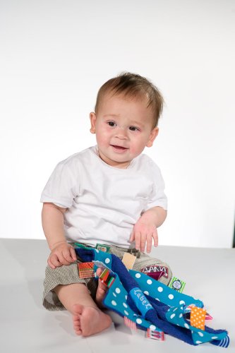 「レーベルレーベル ドット ブルー」は、ベビーの大好きなタグが沢山ついたトイブランケットです。かわいらしいドット柄デザイン。 素材 綿80% ポリエステル20%