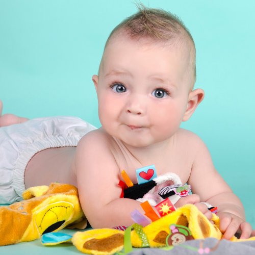 ●みためも質感もそれぞれ違うタグが沢山ついているので、握った感触もしゃぶった感触もおもしろそう。