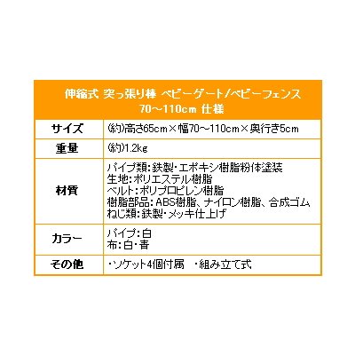 『伸縮式 突っ張り棒 ベビーゲート/ベビーフェンス 70~110cm 』(A754)