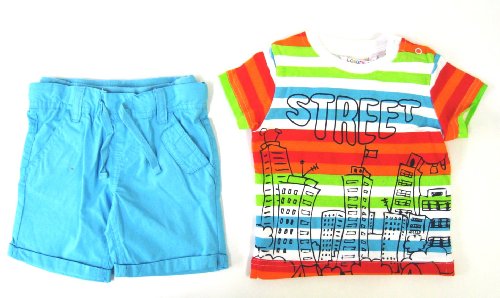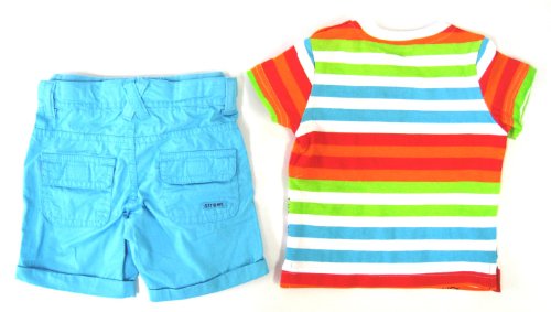 ロサン 半袖マルチボーダーTシャツ&ブルーパンツセット 6M (6ケ月)