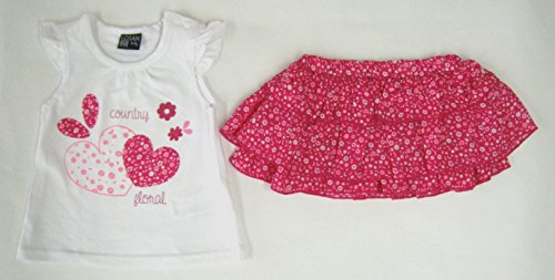 ロサン ハートプリントTシャツ&花柄3段フリルスカート ホワイト×ピンク 6M(6ヶ月)