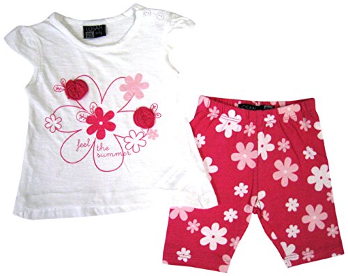 ロサン フレンチスリーブ花柄Tシャツ&花柄ショートパンツ ホワイト×ピンク 9M(9ヶ月)