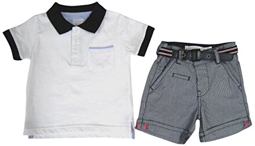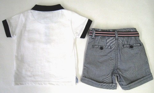 ロサン マリン風ポロシャツ&パンツセット ホワイトー×ヒッコリーストライプ ネイビー9(9ヶ月)