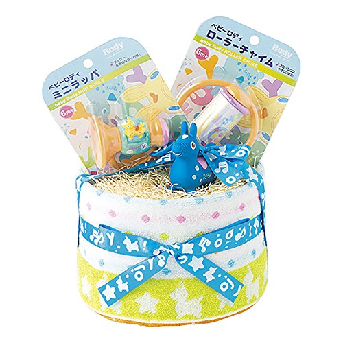商品内容:パンパース テープタイプ Mサイズ×16、ロディ 今治フェイスタオル340×750mm:綿100%、ロディ ローラーチャイム、ロディ ミニラッパ、ロディ スクイーター(水鉄砲)