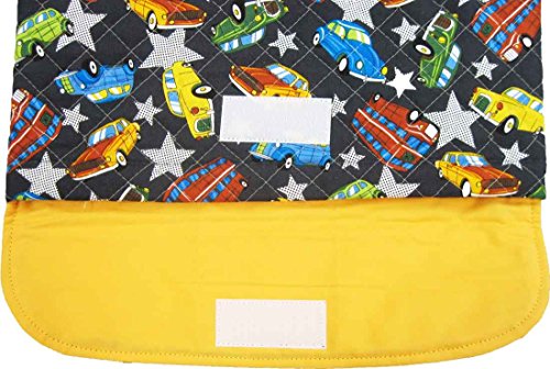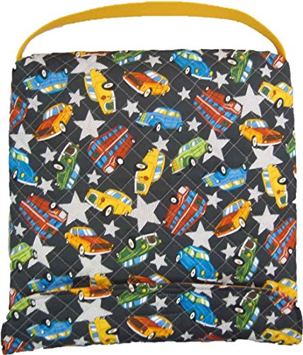 【前から取り出し】 座布団 座布団ケース 座布団カバー(ブラック×自動車柄)子ども用・防災頭巾入れ兼用 幼稚園 座布団 入園入学 幼稚園 保育園 小学校 自転車チャイルドシートの説明 中に防災頭巾を入れるタイプの椅子座布団カバーです。 付属のゴムを椅子の背もたれにかけると「クッション座布団」としてお使いいただけます。 手作りオリジナルです。
