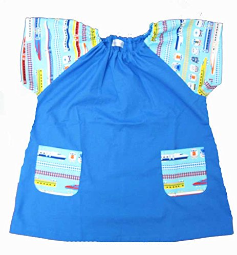 半袖スモック 【園児・幼児】ブルー×電車柄 入園 入学 幼稚園 保育園 小学校 通園 通学 スモック 子供服 キッズ の説明 子供には汚れなんか気にせず元気に遊んでほしい! そんなお母様!! お絵かきや粘土遊び、お食事時間、この幼児スモックがあれば安心です。 お洗濯可能ですので、どんなに汚されてもいつでも清潔にお使いいただけます。 スッポリとかぶるタイプなので、お着替えの苦手なお子様にも一人で簡単に着ていただけます。