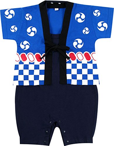 60-90cm 子供 お祭り法被はっぴ ロンパースセット【189246】 60cm ブルー